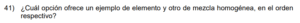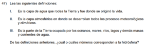 Examen de Ciencias 7mo - 1 /10 Examen de Séptimo - Ciencias 1 Este examen es para practicar Ciencias de Séptimo. 1 / 10 1) nm 2) µm 3) Mm 2 / 10 1) medición. 2) precisión. 3) estimación. 3 / 10 1) las actividades humanas disminuirán el ciclo hidrológico. 2) los gases invernadero provocarán un mundo más seco. 3) la producción de gases invernadero acelerará el ciclo hidrológico. 4 / 10 1) 1- suspensión mecánica y 2- mezcla grosera 2) 1- mezcla heterogénea y 2- disolución 3) 1- mezcla homogénea y 2- mezcla grosera 5 / 10 1) De todas las mediciones solo la I corresponde a la masa. 2) La báscula es un instrumento que mide volúmenes. 3) El instrumento anterior sirve para determinar la masa. 6 / 10 1) 3 y 4 2) 2 3) 1 y 2 7 / 10 1) hidrósfera. 2) atmósfera. 3) capa de ozono. 8 / 10 1) I y III 2) II 3) I 9 / 10 1) llevar a cabo importantes funciones para la célula. 2) controlar en forma desequilibrada el metabolismo celular. 3) reciclar los desechos derivados de las actividades celulares. 10 / 10 1) Vierte un poco de melocotón en un recipiente. 2) Se lava las manos antes de manipular alimentos. 3) Utiliza una báscula para determinar la masa. Déjanos tus datos para que puedas aprender con nuestros profesionales Tu puntación es 0% Reinicia el cuestionario Salir Clic para volver a pagina principal