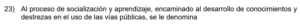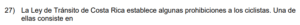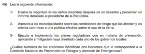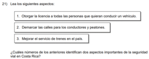 Examen de Cívica 7mo /10 Examen de 7mo - Cívica 1 Este examen para practicar Cívica. 1 / 10 1) educación vial. 2) seguridad vial. 3) desarrollo vial. 2 / 10 1) los programas de seguridad comunitaria. 2) los comités locales de gestión y prevención del riesgo. 3) las organizaciones no gubernamentales. 3 / 10 1) 1 y 3 2) 1 y 2 3) 2 y 3 4 / 10 1) 1 2) 3 3) 2 5 / 10 1) Discriminación. 2) Deber. 3) Delito. 6 / 10 1) Limita la participación de las personas foráneas en los puestos de elección de cargos públicos e integrarse a los partidos políticos. 2) Otorga sin restricciones a los extranjeros, ejercer cada cuatro años el sufragio en los procesos electorales presidenciales y de diputaciones. 3) Establece que Costa Rica, es una República democrática, libre y con un sistema de gobierno representativo. 7 / 10 1) Inundaciones. 2) Tormentas tropicales. 3) Deslizamientos. 8 / 10 1) vía de tránsito. 2) ruta. 3) cultura vial. 9 / 10 1) Gobierno. 2) Estado. 3) Alcaldía. 10 / 10 1) Diseña un ruta de evacuación de la población hacia zonas seguras. 2) Gestiona la restauración de los servicios básicos, tales como agua potable y energía. 3) Refuerza las estructuras de las viviendas o edificios en malas condiciones. Déjanos tus datos para que puedas aprender con nuestros profesionales Tu puntación es 0% Reinicia el cuestionario Salir Clic para volver a pagina principal