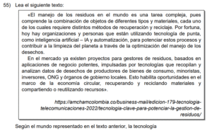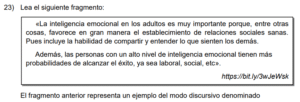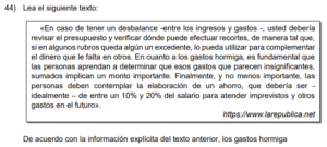 Examen de Español 7mo /10 Examen de 7mo - Español 1 Este examen para practicar Español de Séptimo. 1 / 10 1) honradez como medio para mantener la integridad. 2) gratitud que permite valorar lo que se recibe. 3) lealtad con la cual conservamos a los amigos. 2 / 10 1) contribuye a generar residuos sólidos en el medio ambiente. 2) facilita el manejo correcto de los desperdicios. 3) obstaculiza el avance en cuanto a técnicas de reciclaje. 3 / 10 1) comer y beber sin medida. 2) servir a los demás para alcanzar el bien común. 3) el respeto solamente hacia algunas personas. 4 / 10 1) contaminan las costas y afectan a toda la fauna terrestre. 2) afectan principalmente el nacimiento de las tortugas marinas. 3) producen intoxicación en las especies marinas. 5 / 10 1) explicación. 2) narración. 3) descripción. 6 / 10 1) el respeto. 2) la libertad. 3) la armonía. 7 / 10 1) representan un impacto importante en el presupuesto de una persona. 2) no tienen efecto en el desbalance financiero. 3) son el principal causante de la crisis económica. 8 / 10 1) explicación. 2) descripción. 3) narración. 9 / 10 1) 1 aguda 2 grave 2) 1 grave 2 grave 3) 1 grave 2 aguda 10 / 10 1) artículo. 2) verbo. 3) adjetivo. Déjanos tus datos para que puedas aprender con nuestros profesionales Tu puntación es 0% Reinicia el cuestionario Salir Clic para volver a pagina principal
