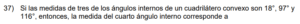 Examen de Geometría Angular /10 Examen de 7mo - Geometría Angular Este examen para practicar Séptimo, contiene de Geometría angular. 1 / 10 1) 125° 2) 35° 3) 305° 4) 55° 2 / 10 1) 868 2) 434 3) 11 070 4) 5412 3 / 10 1) 55º 2) 70º 3) 35º 4) 40º 4 / 10 1) 82° 2) 49° 3) 59° 4) 41° 5 / 10 1) 3 2) 6 3) 2 4) 7 6 / 10 1) Ambas. 2) Solo la I. 3) Solo la II. 4) Ninguna. 7 / 10 1) YPD 2) PDT 3) POR 8 / 10 1) 40º 2) 60º 3) 140º 4) 50º 9 / 10 1) 4 2) 8 3) 3 4) 7 10 / 10 1) ∠EBC 2) ∠ABE 3) ∠CBD 4) ∠ABD Déjanos tus datos para que puedas aprender con nuestros profesionales Tu puntación es 0% Reinicia el cuestionario Salir Clic para volver a pagina principal