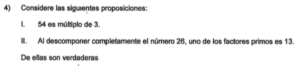 Examen de Teoría de Números Enteros /10 Examen de 7mo - Teoría de Números Enteros Este examen es para practicar Séptimo, Teoría de Números Enteros 1 / 10 1) 50 2) 80 3) 24 2 / 10 1) 4824 2) 6795 3) 1212 4) 2673 3 / 10 1) Ninguna. 2) Ambas. 3) Solo la II. 4) Solo la I. 4 / 10 1) 6 2) 9 3) 2 5 / 10 1) Solo la I. 2) Ninguna. 3) Ambas. 4) Solo la II. 6 / 10 1) 5 2) 7 3) 3 4) 2 7 / 10 1) 70 2) 35 3) 21 4) 42 8 / 10 1) 2 • 2 • 6 2) 2 • 2 • 2 • 3 3) 2 • 3 • 4 4) 3 • 8 9 / 10 1) Ambas. 2) Solo la I. 3) Solo la II. 4) Ninguna. 10 / 10 1) Ambas. 2) Solo la II. 3) Solo la I. 4) Ninguna. Déjanos tus datos para que puedas aprender con nuestros profesionales Tu puntación es 0% Reinicia el cuestionario Salir Clic para volver a pagina principal