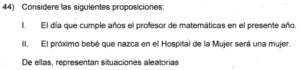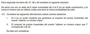 Examen de Estadística 8vo /10 Examen de Estadística 8vo Este examen para practicar solo contiene 10 preguntas de Estadística 1 / 10 1) { 3, 5 } 2) { 1 } 3) { 3, 6 } 4) { 1, 3, 5 } 2 / 10 1) Solo la II 2) Ninguna 3) Solo la I 4) Ambas 3 / 10 1) Ninguna. 2) Ambas. 3) Solo la I. 4) Solo la II. 4 / 10 1) Solo la II 2) Ambas 3) Ninguna 4) Solo la I 5 / 10 1) (R) 2) (V, A) 3) (R, R, R) 4) (V, V, A) 6 / 10 1) Ninguna 2) Solo la II 3) Ambas 4) Solo la I 7 / 10 1) Ninguna 2) Solo la I 3) Ambas 4) Solo la II 8 / 10 1) {(C,C) , (E,E) , (C,E) , (E,C)} 2) {(E,E) , (C,C)} 3) {(C,E) , (E,C)} 4) {(C,E) , (C,C) , (E,C)} 9 / 10 1) Ninguna 2) Solo la I 3) Solo la II 4) Ambas 10 / 10 1) Solo la I 2) Solo la II 3) Ninguna Déjanos tus datos para que puedas aprender con nuestros profesionales Tu puntación es 0% Reinicia el cuestionario Salir Clic para volver a pagina principal