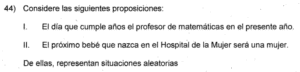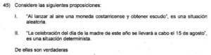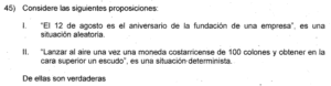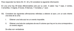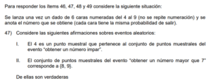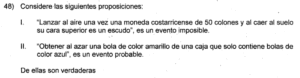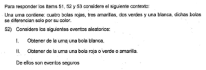 Examen de Eventos de Probabilidad de 8vo /10 Examen para 8vo - Mate Eventos de Probabilidad Este examen para practicar solo contiene preguntas de Eventos de Probabilidad de 8vo. 1 / 10 1) Impar 2) Par 3) Menor que 5 2 / 10 1) Solo la I. 2) Ninguna. 3) Ambas. 4) Solo la II. 3 / 10 1) Solo la II. 2) Solo la I. 3) Ambas. 4) Ninguna. 4 / 10 1) {R, R, R} 2) {R, V, A} 3) {R, V} 4) {V, V, A} 5 / 10 1) Solo la II. 2) Ninguna. 3) Ambas. 4) Solo la I. 6 / 10 1) Ninguna. 2) Ambas. 3) Solo la I. 4) Solo la II. 7 / 10 1) Solo la II. 2) Ninguna. 3) Ambas. 4) Solo la I. 8 / 10 1) Solo la I. 2) Solo la II. 3) Ninguna. 9 / 10 1) Ambas. 2) Solo la II. 3) Solo la I. 4) Ninguna. 10 / 10 1) Solo la II. 2) Ambas. 3) Ninguna. 4) Solo la I. Déjanos tus datos para que puedas aprender con nuestros profesionales Tu puntación es 0% Reinicia el cuestionario Salir Clic para volver a pagina principal