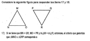 Examen de Geometría 8vo /10 Examen de Geometría 8vo Este examen para practicar solo contiene 10 preguntas de Geometría 1 / 10 1) Ambas 2) Ninguna 3) Solo la II 4) Solo la I 2 / 10 1) 11,80 2) 8,20 3) 4,37 4) 6,17 3 / 10 1) Solo la I. 2) Solo la II. 3) Ninguna. 4) Ambas. 4 / 10 1) Ninguna 2) Solo la I 3) Ambas 4) Solo la II 5 / 10 1) CSB 2) ARB 3) CSR 6 / 10 1) ángulo-ángulo-ángulo. 2) lado-ángulo-lado. 3) ángulo-lado-ángulo. 4) lado-lado-lado. 7 / 10 1) 12 2) 10 3) 9 8 / 10 1) L-A-L 2) A-A-A 3) L-L-L 4) A-L-A 9 / 10 1) 16 2) 15 3) 14 10 / 10 1) Solo la I 2) Solo la II 3) Ambas 4) Ninguna Déjanos tus datos para que puedas aprender con nuestros profesionales Tu puntación es 0% Reinicia el cuestionario Salir Clic para volver a pagina principal