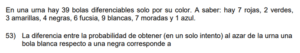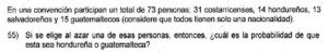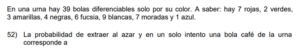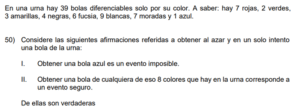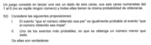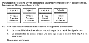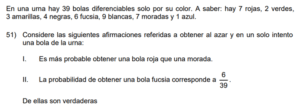 Examen de Probabilidad 8vo /10 Examen para 8vo - Mate Probabilidad Este examen para practicar solo contiene preguntas de Probabilidad de 8vo. 1 / 10 1) Ninguna. 2) Solo la I. 3) Solo la II. 2 / 10 1) 14/73 2) 29/73 3) 18/73 4) 13/73 3 / 10 1) Ambas. 2) Ninguna. 3) Solo la I. 4) Solo la II. 4 / 10 1) 2 2) 4 3) 3 4) 1 5 / 10 1) 27/73 2) 28/73 3) 15/73 4) 31/73 6 / 10 1) Ninguna. 2) Solo la II. 3) Solo la I. 7 / 10 1) Solo la II. 2) Solo la I. 3) Ninguna. 8 / 10 1) 1/2 2) 2/3 3) 3/4 4) 1/4 9 / 10 1) Solo la I. 2) Ninguna. 3) Solo la II. 10 / 10 1) Ambas. 2) Solo la I. 3) Solo la II. 4) Ninguna. Déjanos tus datos para que puedas aprender con nuestros profesionales Tu puntación es 0% Reinicia el cuestionario Salir Clic para volver a pagina principal