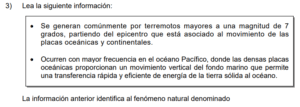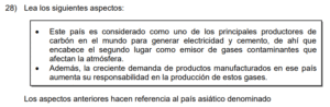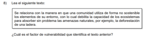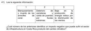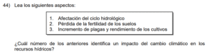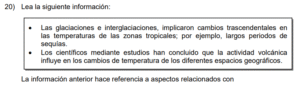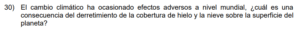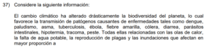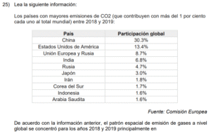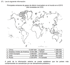 Examen de Sociales 8vo /10 Examen de 8vo - Sociales 1 Este examen para practicar Sociales de Octavo. 1 / 10 1) Se bloquea la absorción de la radiación solar por el dióxido de carbono, lo que evita la salida de los rayos solares. 2) Responde a todas las acciones provocadas directamente de forma antrópica. 3) Genera un sobrecalentamiento que aumenta sostenidamente el grado de calor de la Tierra. 2 / 10 1) fortalecer la dependencia de los derivados de los combustibles fósiles. 2) fomentar en la población el consumo irracional de electricidad. 3) aumentar la eficiencia del transporte colectivo y privado. 3 / 10 1) China se vio obligado a eliminar las emisiones de gases contaminantes, como el dióxido de carbono. 2) Se redujeron en los países tercermundistas los impactos negativos ocasionados por los eventos naturales. 3) Se lograron disminuir las emanaciones de gases del efecto invernadero de origen antrópico. 4 / 10 1) 1 2) 3 3) 2 5 / 10 1) fabricación de cemento y vidrio. 2) liberación de gas metano en el tratamiento de desechos sólidos. 3) utilización de combustibles fósiles para el sector transporte. 6 / 10 1) Permite a la sociedad civil denunciar las prácticas adversas con el desarrollo sostenible. 2) Obliga a todas las personas a poner en práctica las leyes de educación ambiental. 3) Propicia acciones sobre el manejo sustentable de los recursos hídricos. 7 / 10 1) Organizativo 2) Social 3) Ambiental 8 / 10 1) representa un ejemplo en el manejo de los impactos ambientales. 2) redujo el control de las inundaciones. 3) disminuyó los sectores de conservación y áreas protegidas. 9 / 10 1) biodiversidad. 2) salud. 3) energía. 10 / 10 1) las causas naturales que han contribuido al desarrollo del cambio climático. 2) los cambios históricos de las emisiones de gases del efecto invernadero. 3) las consecuencias ocasionadas por el efecto invernadero. Déjanos tus datos para que puedas aprender con nuestros profesionales Tu puntación es 0% Reinicia el cuestionario Salir Clic para volver a pagina principal