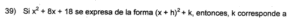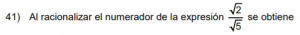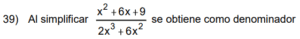 Examen de Algebra /10 Examen de 9no - Algebra Este examen para practicar Noveno, contiene ejercicios de Algebra. 1 / 10 1) 2 2) -1 3) -2 4) 1 2 / 10 1) Solo la I 2) Ambas 3) Solo la II 4) Ninguna 3 / 10 1) 2 2) -6 3) -4 4) 3 4 / 10 1) x + y 2) 1 + x 3) 1 + y 5 / 10 1) 5 / √2 2) 2 / √10 3) 2 / √5 6 / 10 1) x + y² 2) x¹⁰⁰ 3) x¹⁰² 4) x²+ y 7 / 10 1) 2 2) 8 3) 18 4) 4 8 / 10 1) 8 2) 12 3) 2 9 / 10 1) 2x 2) 2x³ 3) 2x² 10 / 10 1) -6 2) 6 3) 2 4) -12 Déjanos tus datos para que puedas aprender con nuestros profesionales Tu puntación es 0% Reinicia el cuestionario Salir Clic para volver a pagina principal
