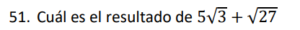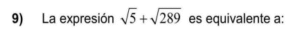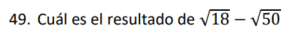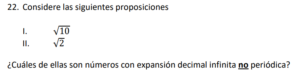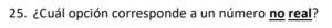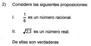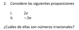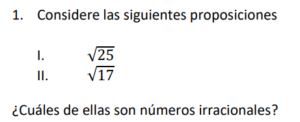 Examen Nros Reales 9no /10 Examen para 9no - Mate Números Reales Este examen para practicar solo contiene 10 preguntas de Números Reales 1 / 10 1) Ambas 2) Solo la I 3) Solo la II 4) Ninguna 2 / 10 1) √4 2) √20 3) √16 4) √10 3 / 10 1) 1,41 2) 0,99 3) 1,01 4) 0,50 4 / 10 1) √17-23 2) √17-√23 3) √512 4) √546 5 / 10 1) ∛-5 2) ∛-1 3) ∛2 4) √-4 6 / 10 1) ³√35 2) √8 3) √17 7 / 10 1) 3,24 2) 1,92 3) 3,35 4) 2,83 8 / 10 1) Ninguna 2) Solo la II 3) Ambas 4) Solo la I 9 / 10 1) √2 2) ∛-1 3) ∛1 4) √-2 10 / 10 1) 8√2 2) -2√2 3) 2√2 4) -8√2 Déjanos tus datos para que puedas aprender con nuestros profesionales Tu puntación es 0% Reinicia el cuestionario Salir Clic para volver a pagina principal