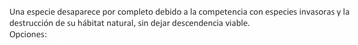 Biología Bachi - Procesos Evolutivos /10 Práctica para Bachi - Biología - Procesos Evolutivos Esta prueba es para practicar el tema de Procesos Evolutivos de Biología para Bachillerato. 1 / 10 1) Coevolución 2) Especiación 3) Adaptación 4) Extinción 2 / 10 1) Coevolución 2) Extinción 3) Especiación 4) Adaptación 3 / 10 1) Adaptación 2) Extinción 3) Especiación 4) Coevolución 4 / 10 1) Adaptación 2) Coevolución 3) Extinción 4) Especiación 5 / 10 1) Extinción 2) Especiación 3) Adaptación 4) Coevolución 6 / 10 1) Coevolución 2) Adaptación 3) Extinción 4) Especiación 7 / 10 1) Coevolución 2) Adaptación 3) Especiación 4) Extinción 8 / 10 1) Extinción 2) Coevolución 3) Adaptación 4) Especiación 9 / 10 1) Adaptación 2) Especiación 3) Coevolución 4) Extinción 10 / 10 1) Especiación 2) Adaptación 3) Coevolución 4) Extinción Déjanos tus datos para que puedas aprender con nuestros profesionales Tu puntación es 0% Reinicia el cuestionario Salir Clic para volver a pagina principal