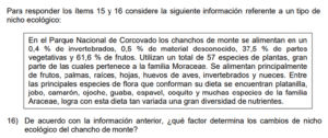 Examen de Biología Bachi - A /10 Examen de Bachillerato - Biología 1 Este examen es para practicar Biología de Bachillerato. 1 / 10 1) ph. 2) agua. 3) temperatura. 2 / 10 1) La ubicación del parque nacional 2) Los pocos nutrientes que le brinda cada alimento 3) La gran disponibilidad de alimentos en su hábitat 3 / 10 1) anatómica 2) fisiológica 3) etológica 4 / 10 1) amensalismo, ya que las pulgas se perjudican y Coni no sufre afectación. 2) parasitismo, ya que las pulgas se alimentan de la piel de Coni. 3) comensalismo, ya que las pulgas no se alimentan de Coni. 5 / 10 1) La contaminación de aguas subterráneas utilizadas para consumo humano 2) La producción de plantas resistentes a plagas 3) La disminución de la concentración de nitratos en el suelo 6 / 10 1) Turner. 2) Down. 3) Edwards. 7 / 10 1) Cambio climático 2) Reforestación 3) Deforestación 8 / 10 1) Prohibir realizar viajes a lugares montañosos densamente poblados 2) Fumigar las viviendas de muchos hogares costarricenses 3) Lograr el acceso para todas las personas a los Ebais 9 / 10 1) Introducir flora y fauna de otros países. 2) Oponerse a un desarrollo sostenible. 3) Proteger, restaurar y fomentar el uso sostenible de los recursos naturales. 10 / 10 1) C₆H₁₂O₆ 2) H₂O 3) CO₂ Déjanos tus datos para que puedas aprender con nuestros profesionales Tu puntación es 0% Reinicia el cuestionario Salir Clic para volver a pagina principal