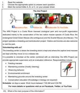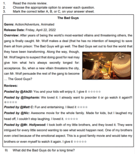 Examen Ingles Bachi /10 Examen de Bachi - Ingles Este examen para practicar Ingles de Bachillerato. 1 / 10 1) He went to university. 2) He started working in a small company. 3) Leonardo decided to study business administration. 2 / 10 1) To receive an invitation. 2) To pay for a subscription. 3) To open an account. 3 / 10 1) To select the kind of review. 2) To click on Write a Review. 3) To look for the name of the place. 4 / 10 1) Causes and effects of tsunamis 2) Types of tsunami waves 3) How to be ready for a tsunami 5 / 10 1) To show the importance of preserving any bird. 2) To educate people on biology. 3) To motivate people to work for free on the ARA project. 6 / 10 1) Computer engineer 2) English teacher 3) Computer science teacher 7 / 10 1) They threatened people. 2) They persuaded Mr. Wolf to be a good guy. 3) They saved villains from prison. 8 / 10 1) @Inicole30 2) @Irina22 3) @Newton20 9 / 10 1) Their waves run very fast. 2) They are easily predictable. 3) Their waves run at a slow pace. 10 / 10 1) Interacting with foreigners 2) Speaking the language 3) Dealing with rude people Déjanos tus datos para que puedas aprender con nuestros profesionales Tu puntación es 0% Reinicia el cuestionario Salir Clic para volver a pagina principal