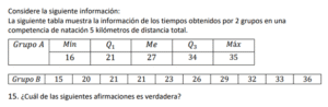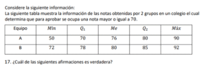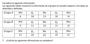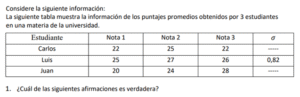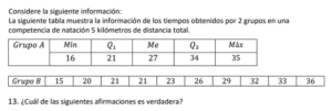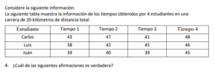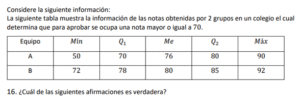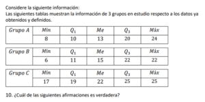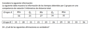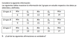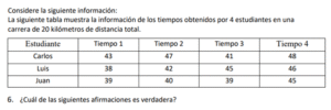 Examen de Bachillerato Datos Numéricos /10 Examen de Bachi - Mate Datos Numéricos Este examen para practicar Bachiller, contiene preguntas de Datos Numéricos 1 / 10 1) Hay igual cantidad de aprobados en el equipo A, que en el equipo B. 2) Hay más aprobados en el equipo B, que en el equipo A. 3) Hay más aprobados en el equipo A, que en el equipo B. 2 / 10 1) El mínimo obtenido en el grupo B es igual que el del grupo C. 2) El mínimo obtenido en el grupo B es mayor que el del grupo C. 3) El mínimo obtenido en el grupo B es menor que el del grupo C. 3 / 10 1) Los tiempos obtenidos por Luis presentan menos variabilidad que las de Juan. 2) Los tiempos obtenidos por Luis presentan más variabilidad que las de Juan. 3) Los tiempos obtenidos por Luis presentan igual variabilidad que las de Juan. 4 / 10 1) Las notas obtenidas por Carlos son menos variables que las de Luis. 2) Las notas obtenidas por Carlos son igualmente variables que las de Luis. 3) Las notas obtenidas por Carlos son más variables que las de Luis. 5 / 10 1) Son más variables los datos obtenidos en el grupo A que el del grupo B. 2) Son igualmente variables los datos obtenidos en el grupo A que el del grupo B. 3) Son menos variables los datos obtenidos en el grupo A que el del grupo B. 6 / 10 1) Los tiempos obtenidos por Carlos son más variables que los de Luis. 2) Los tiempos obtenidos por Carlos son igualmente variables que los de Luis. 3) Los tiempos obtenidos por Carlos son menos variables que los de Luis. 7 / 10 1) El recorrido intercuartílico obtenido en el grupo A es mayor que el del grupo B. 2) El recorrido intercuartílico obtenido en el grupo A es igual que el del grupo B. 3) El recorrido intercuartílico obtenido en el grupo A es menor que el del grupo B. 8 / 10 1) Los tiempos obtenidos por Carlos son más variables que los de Juan. 2) Los tiempos obtenidos por Carlos son menos variables que los de Juan. 3) Los tiempos obtenidos por Carlos son igualmente variables que los de Juan. 9 / 10 1) El máximo obtenido en el grupo A es menor que el del grupo C. 2) El máximo obtenido en el grupo A es igual que el del grupo C. 3) El máximo obtenido en el grupo A es mayor que el del grupo C. 10 / 10 1) El máximo obtenido en el grupo A es menor que el del grupo C. 2) El máximo obtenido en el grupo A es igual que el del grupo C. 3) El máximo obtenido en el grupo A es mayor que el del grupo C. Déjanos tus datos para que puedas aprender con nuestros profesionales Tu puntación es 0% Reinicia el cuestionario Salir Clic para volver a pagina principal